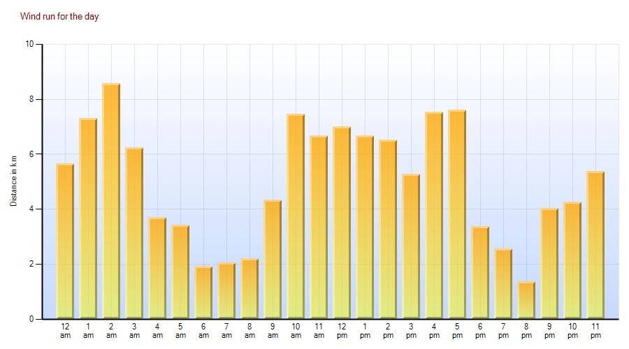 Richmond Downs Herd Home (Kio Kio) wind run summary for Sunday, April 15, 2018