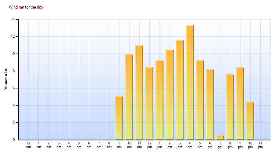 Richmond Downs Herd Home (Kio Kio) wind run summary for Saturday, October 28, 2023